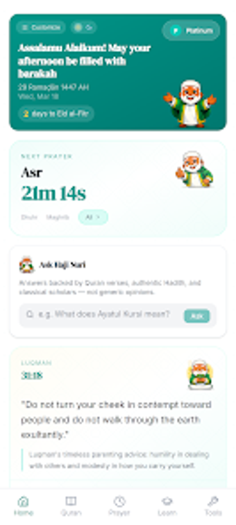 นอกจากฟีเจอร์กุรอานแล้ว ฮาจิ นูรียังมีคู่มืออิสลาม AI ที่ตอบคำถามพร้อมอ้างอิงจากกุรอานและฮะดีษ ซึ่งช่วยเพิ่มความเข้าใจของผู้ใช้เกี่ยวกับคำสอนของอิสลาม แอปนี้มีเรื่องเล่าที่บรรยายเกี่ยวกับศาสดา แผนการถือศีลอดในเดือนรอมฎอน 30 วัน และเครื่องคิดเลขซะกาต โดยมุ่งเน้นที่การมีส่วนร่วมของผู้ใช้ มันติดตามความก้าวหน้าในการอ่านและนิสัยการสวดมนต์ ทั้งหมดนี้อยู่ในอินเทอร์เฟซที่ออกแบบมาอย่างสวยงามและไม่มีสิ่งรบกวน แอปนี้เริ่มต้นฟรี โดยมีตัวเลือกพรีเมียมสำหรับฟีเจอร์ที่ขยายออกไป